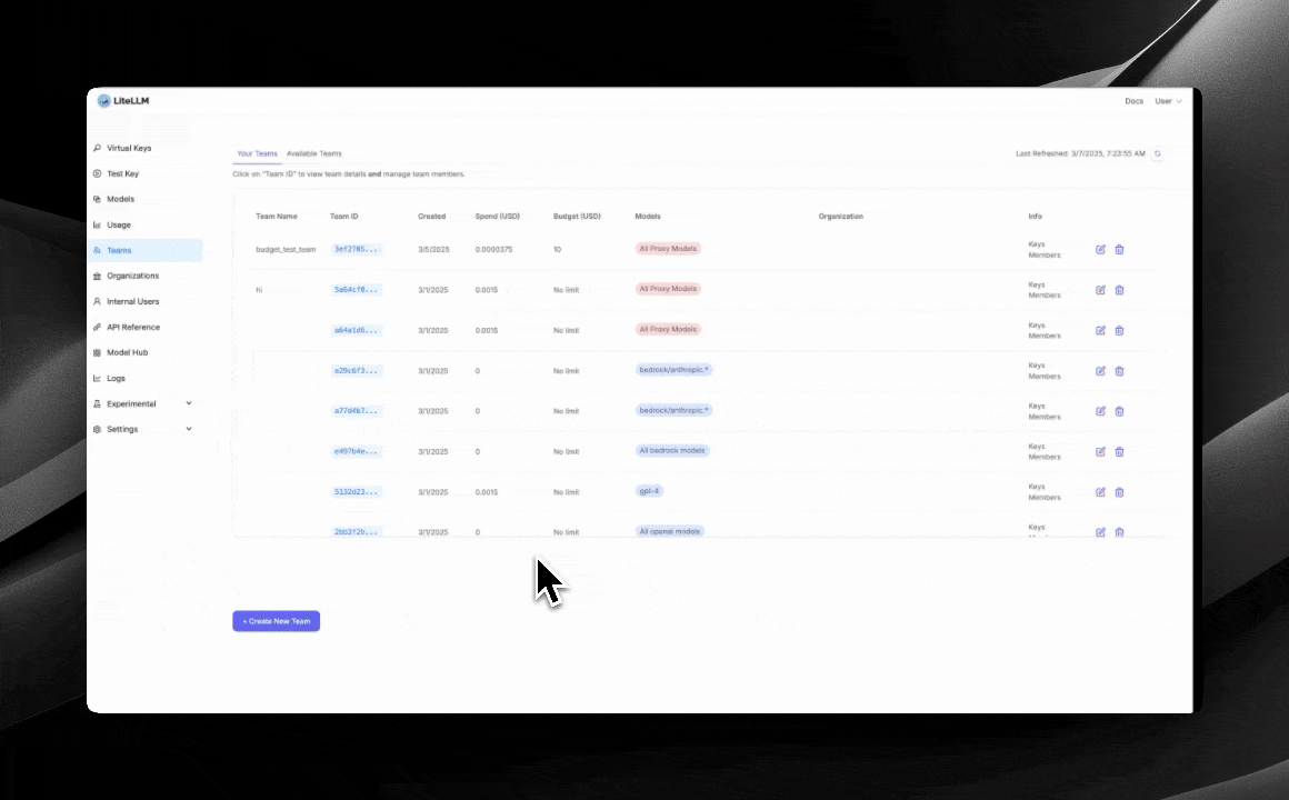 Once the Team is created, you can invite Users to the Team. You can read more about LiteLLM's User Management here.